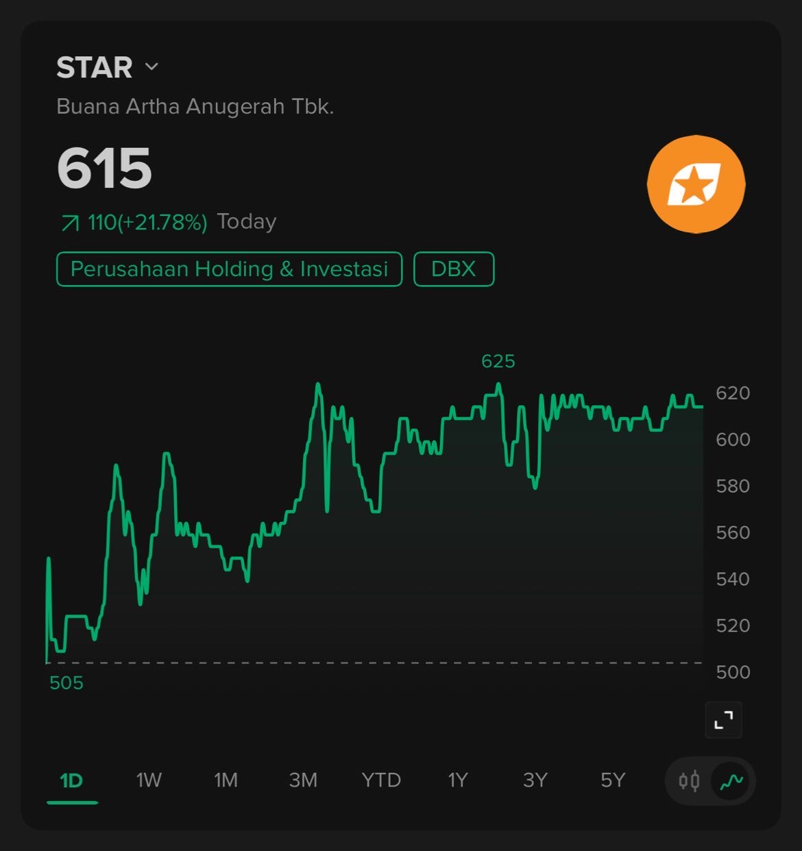 Salah satu saham yang akan saya hold untuk swing falam jangka waktu 1-2 minggu dengan target minimal 1x bagger dari harga sekarang adalah $STAR... Kenapa star saya ambil??
