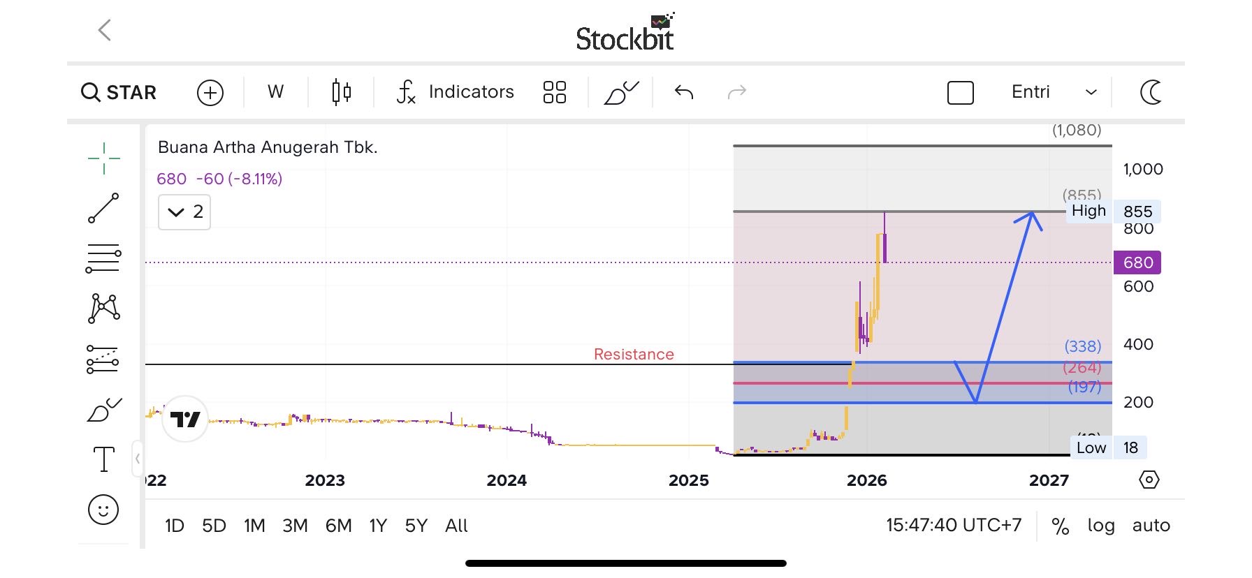 STAR baru aja drop besar -8% dari 752.
