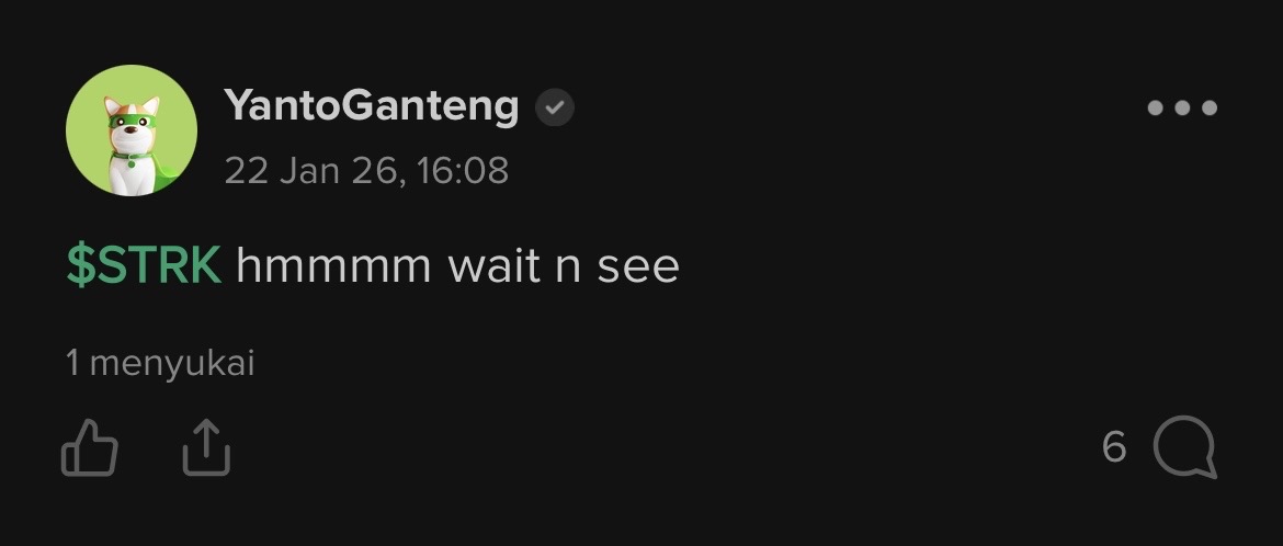 Naik nya pelan2 aja ndar, biar engga kelihatan ritel di running trade, sehari 5% kan lumayan , yuhuu $STRKπ₯³