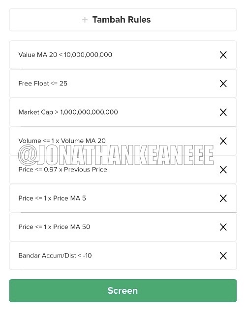 Screener Gorengan Turun “DIBAWA TURUN BANDAR” Edition 🛢📉🐍