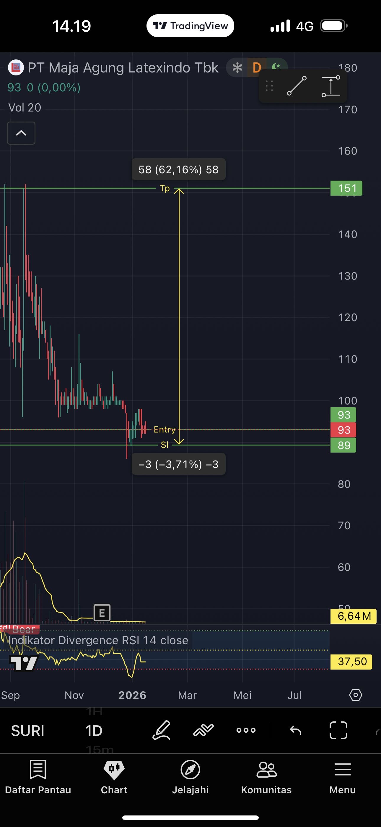 $SURI ini saham ud mati , ga ada yg main lagi, mending kita pindah, liat aja volumenya cuman 170jutaan aaja ud sesi 2, apa yg kita harapkan, banyak kok pilihan saham lain,