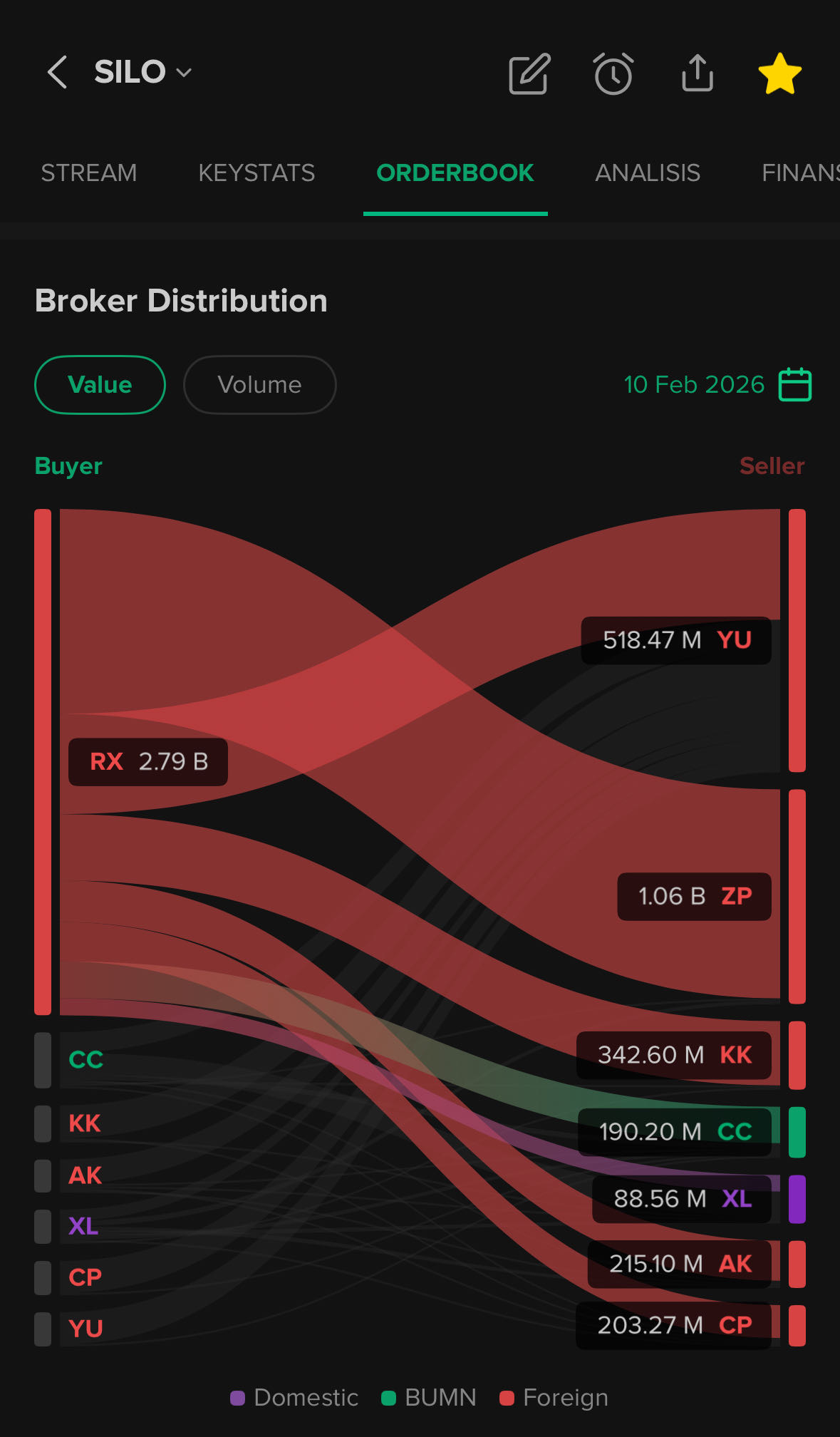 Hari ini (11/2) $SILO Val. terlihat kecil, kemarin lebih rame karena asing - institusi crossing barang