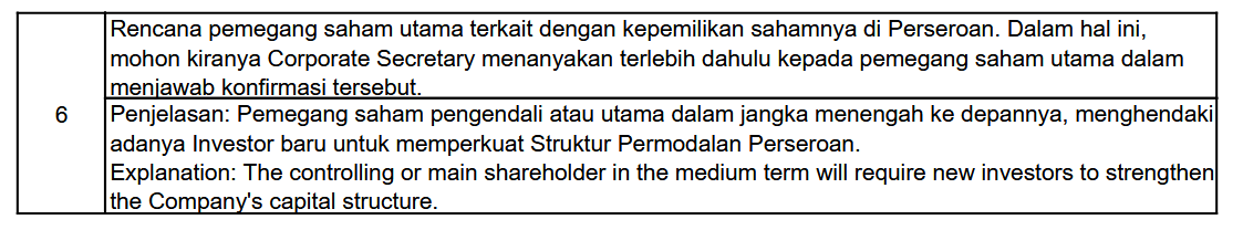 $TALF pemegang saham pengendali/utama ke depan berencana mencari investor baru guna memperkuat struktur permodalan Perseroan, yang masih dalam tahap rencana dan akan dikonfirmasi lebih lanjut.
