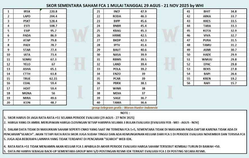 di papan pemantauan khusus (FCA) kriteria 1