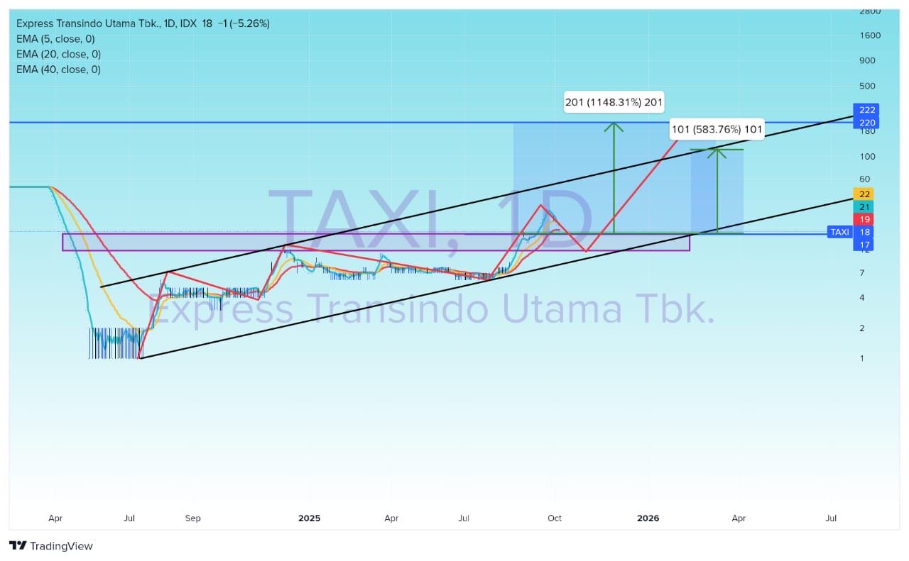 $TAXI hari ini udah masuk Area Supportnya.. jadi tinggal tunggu apakah ada pantulan atau candle pembalikan arah. area support pertama diharga 14-18 & support kedua di harga 9-10 (ke area awal)