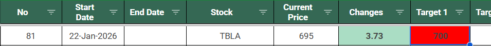 $TBLA hit target 1 , sejak 22 januari 2026. kurleb 1 bulan.