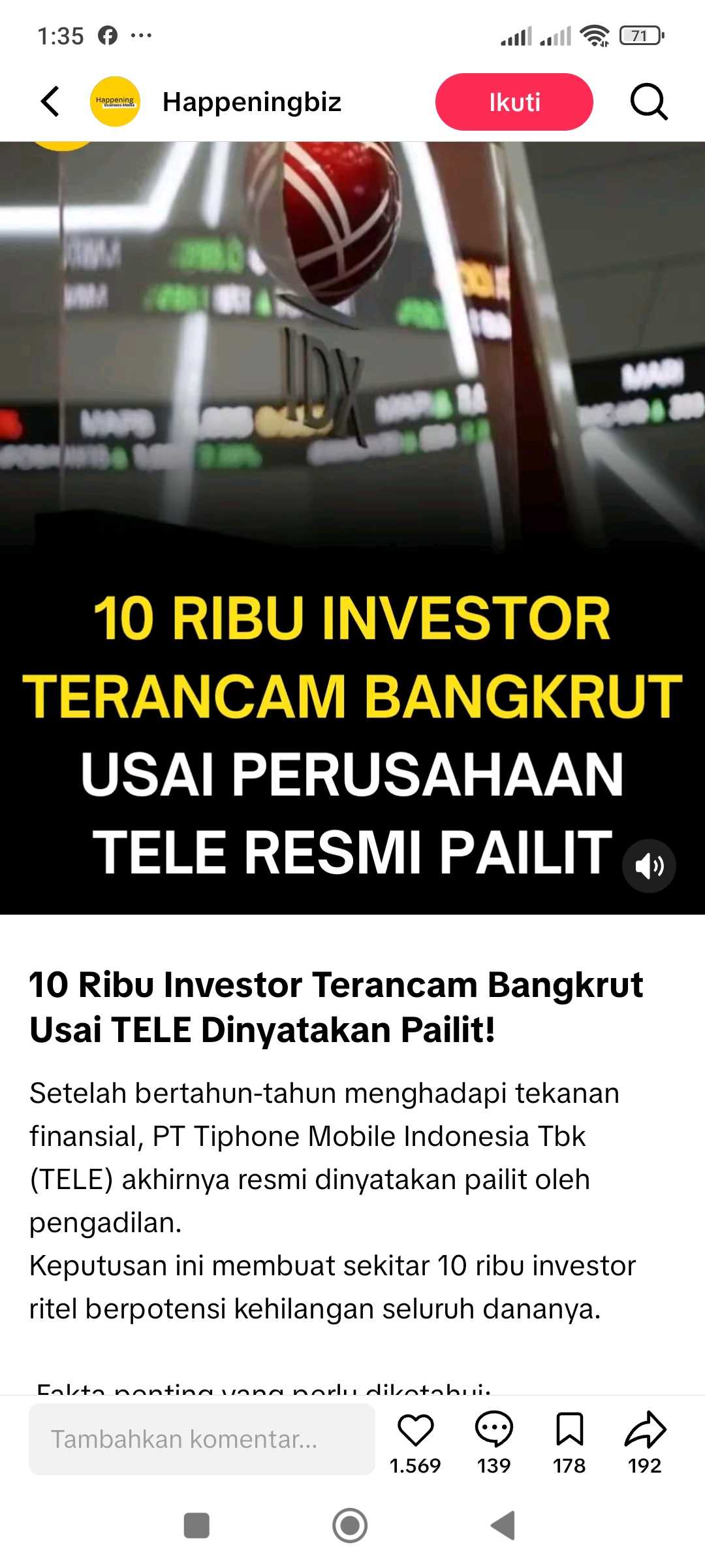 Innalillahi… $TELE pailit. Semoga yg msh nyangkut disini segera dapat rejeki penggantinya ya. Hati2 memilih emiten.