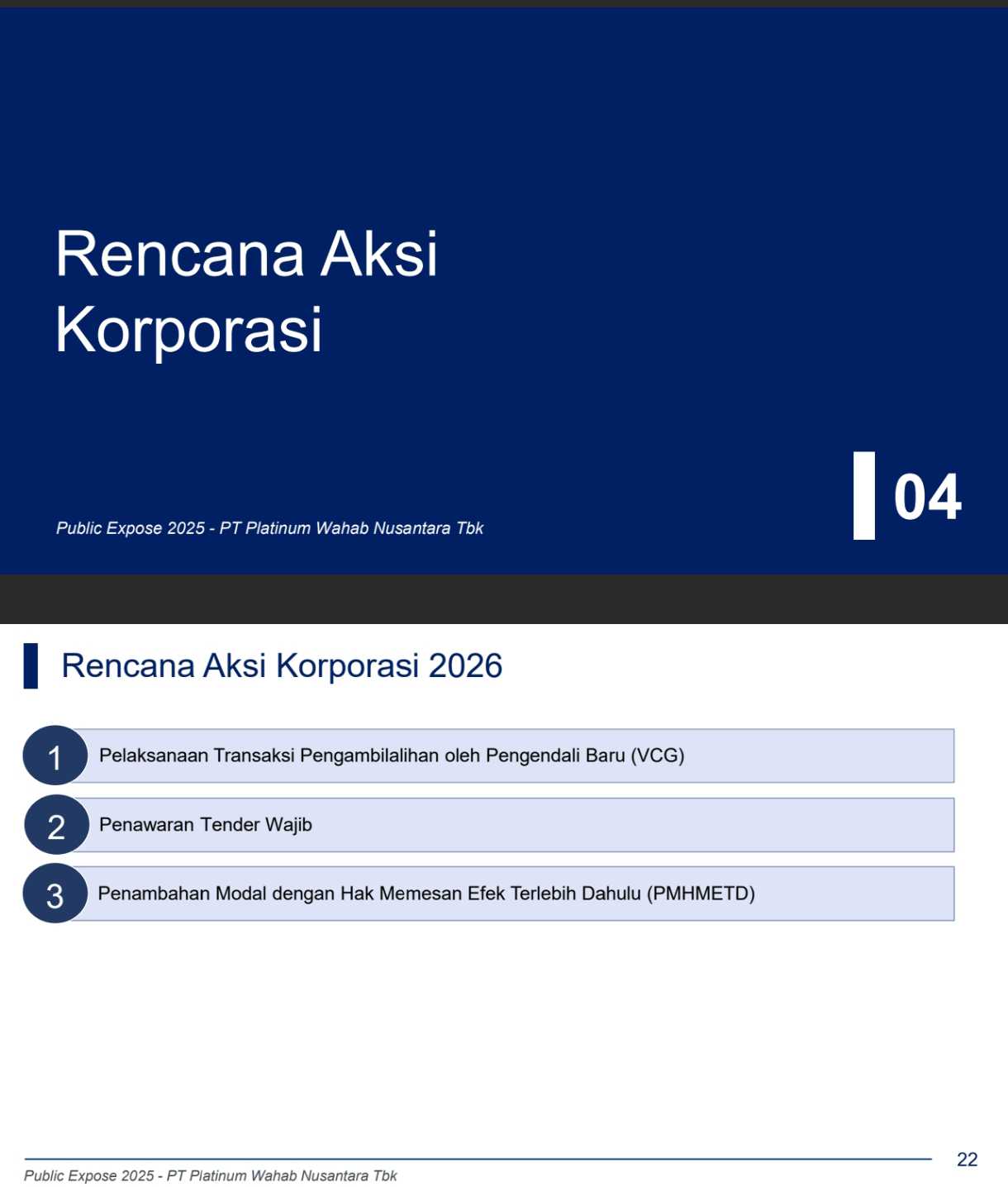 Berdasarkan keterbukaan informasi di BEI, Senin (1/12/2025) suspensi dilakukan sehubungan dengan PT Platinum Wahab Nusantara Tbk (TGUK) yang belum menyam...