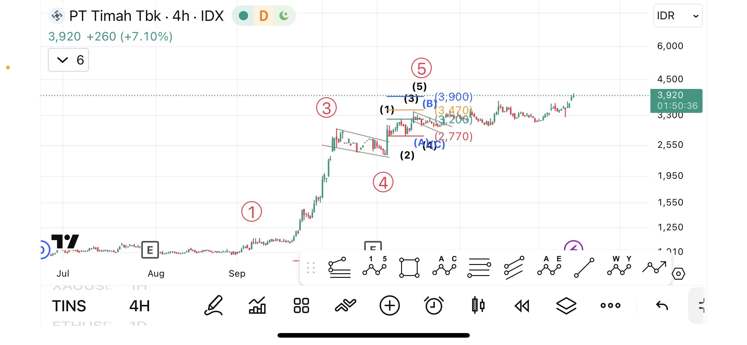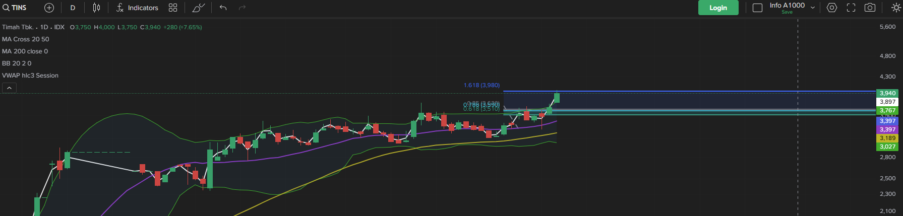 Saham TINS yang kami bagikan pada 6 Januari hari ini berhasil mencapai target akhir di 3.860. Tidak berhenti di sana, momentum penguatan berlanjut hingga mencetak harga tertinggi di 4.000. Pergerakan ini menegaskan bahwa skenario yang disusun berjalan rapi, dengan tren yang tetap kuat dan respons pasar yang sangat positif.