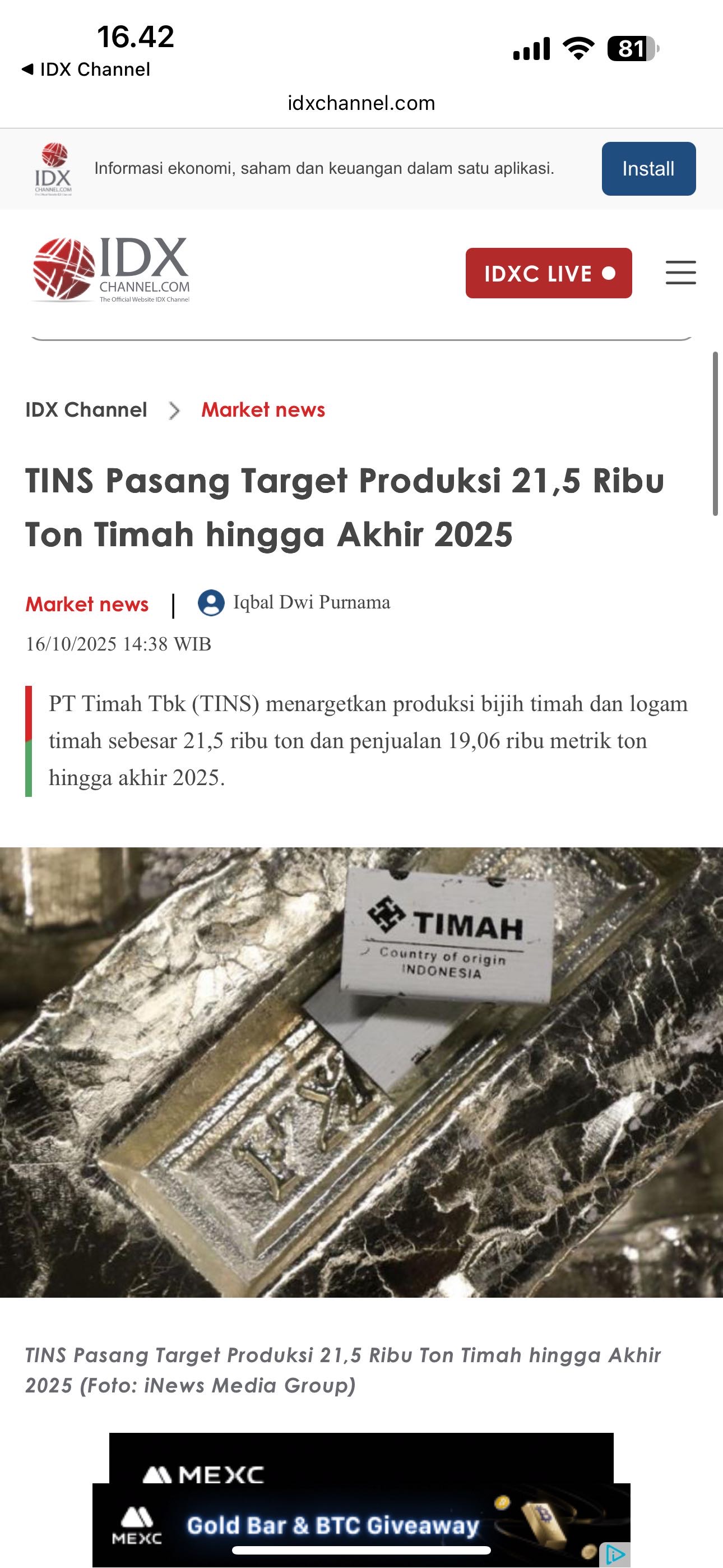 @abilly betul, ARB kan aja, $TINS hanya untuk longterm, hanya untuk investor diamond hand. itupun jika investor percaya apakah BUMN bisa meneliti, memilah, mengelola, mengolah, memproduksi? atau main aman, ekspor bahan baku LTJ ke China? gimana menurutmu?