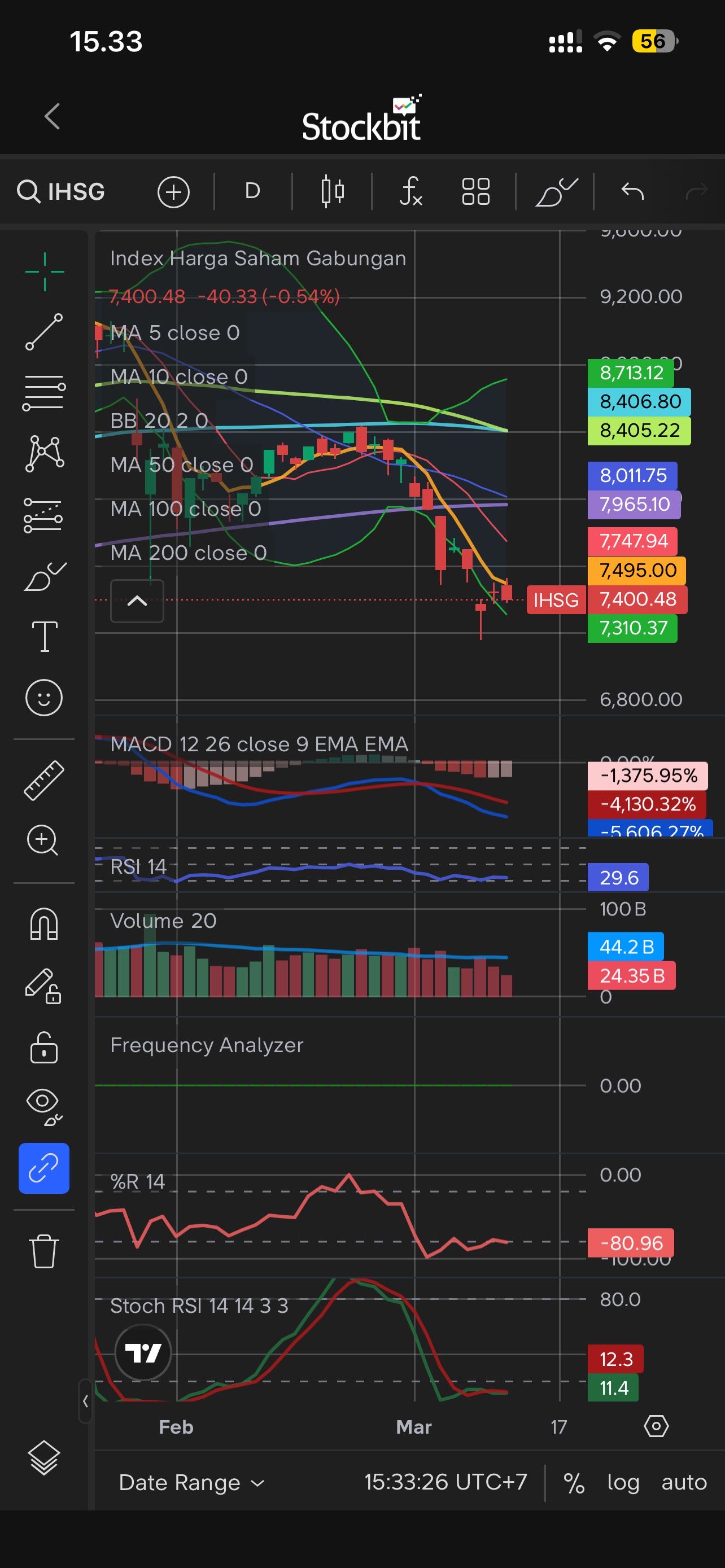 Indeks Harga Saham Gabungan atau IHSG ditutup melesat 1,41% ke 7.440 pada perdagangan hari ini, Selasa (10/3). Namun IHSG masih melemah 6,28% dalam seminggu terakhir.