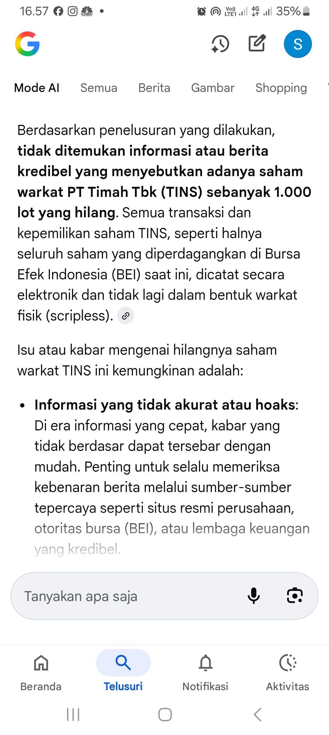 @AndiFSB katanya sii tidak ada saham tins $TINS yang warkat fisik,semua di perdagangkan di bursa BEI
