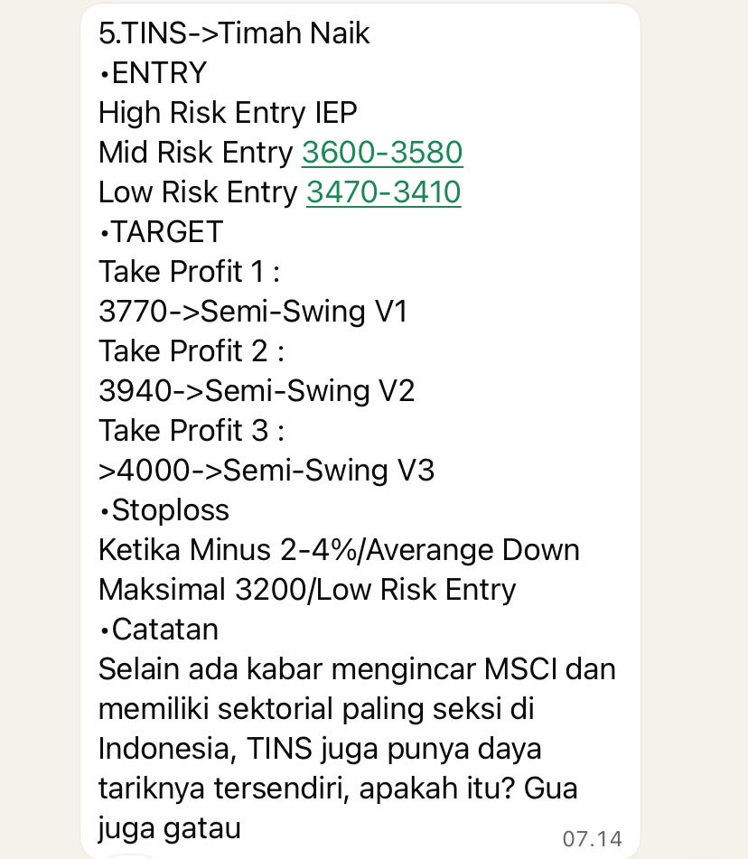 $TINS Di saham cyclical biasanya up only saat momentum dapat. Jadi ga perlu keluar masuk.