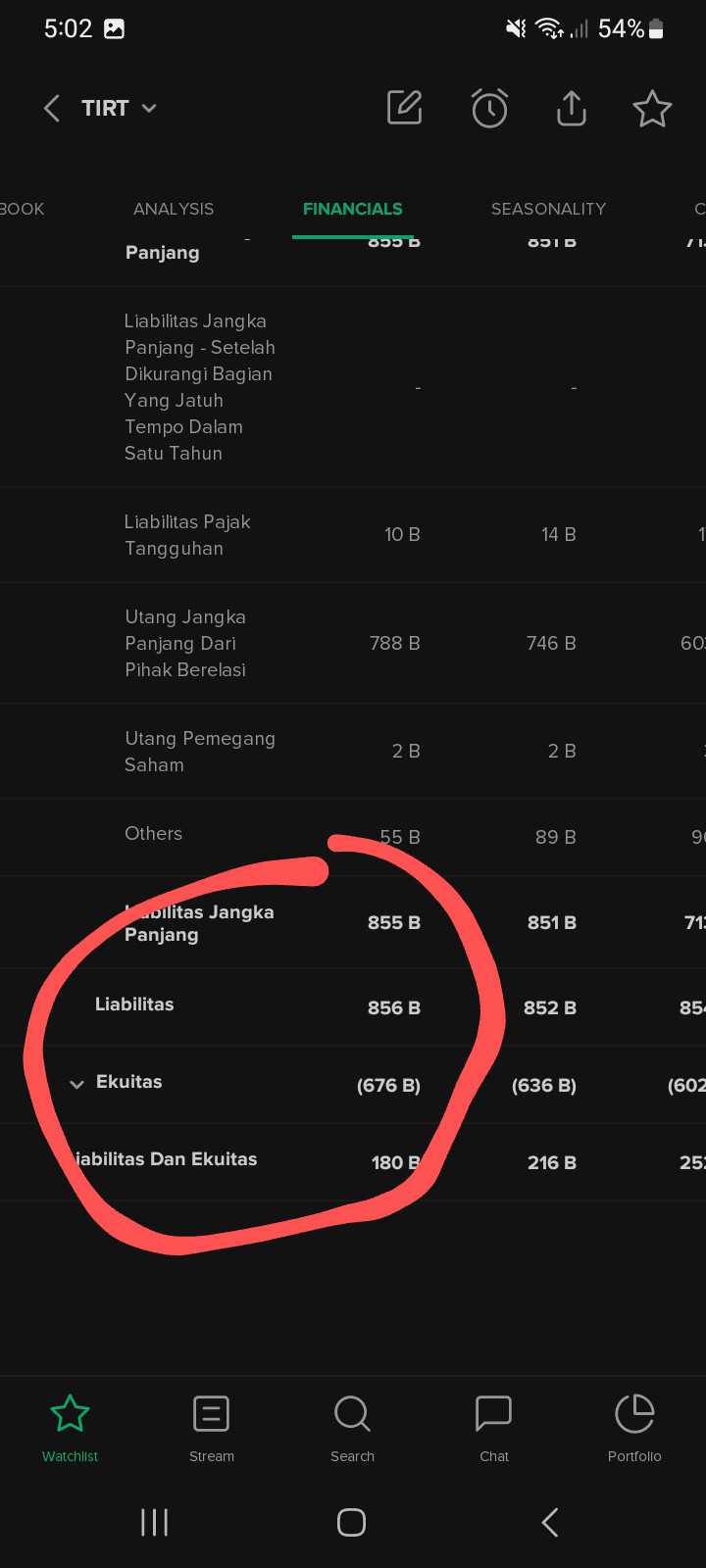@SandraM apa yg d harapkan dari $TIRT om, valuasi nya aja minus, laporan keuangan rugi mulu, ekuitas minus, utang banyak, kas cuma 1 milyar