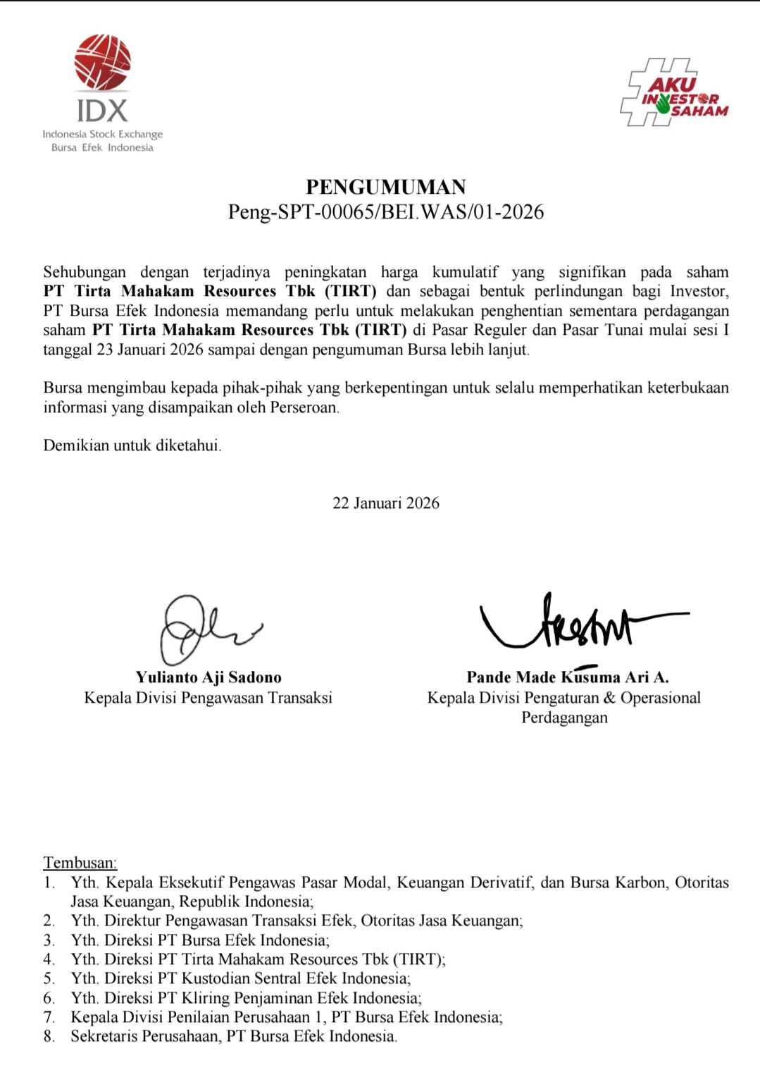 $TIRT mau tanya untuk holder tirt semisal suspend sudah ke buka terus Ara lagi apakah akan disuspend lagi?