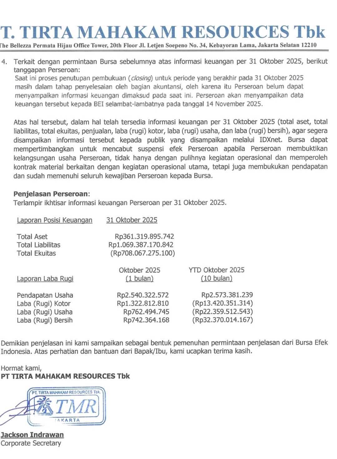 Moga aja izin pelayarannya segera keluar dan bisa operasional sebelum pergantian tahun, biar Q4 revenue nya udah masuk dan $TIRT bisa open suspend lagi tahun depan