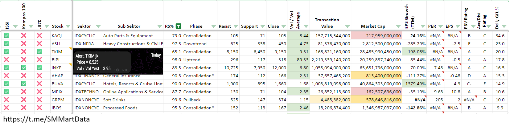 * Notes: Data RS%, EPS Growth bisa diakses lewat SMMartData