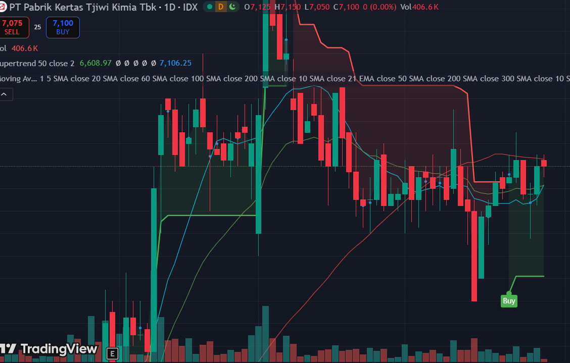 $TKIM berada di kisaran Rp7.125 dengan perubahan positif sekitar 1,06%. Harga tertinggi dalam setahun mencapai Rp8.025 dan terendah Rp4.450. Rasio Price to Earnings (PER) sekitar 7,43 menunjukkan valuasi yang relatif murah dibandingkan laba perusahaan. Earnings per Share (EPS) mencatat sekitar 958,8. Analis merekomendasikan TKIM sebagai saham pilihan di tengah tekanan IHSG, meski industri kertas sedang menghadapi tantangan global.
