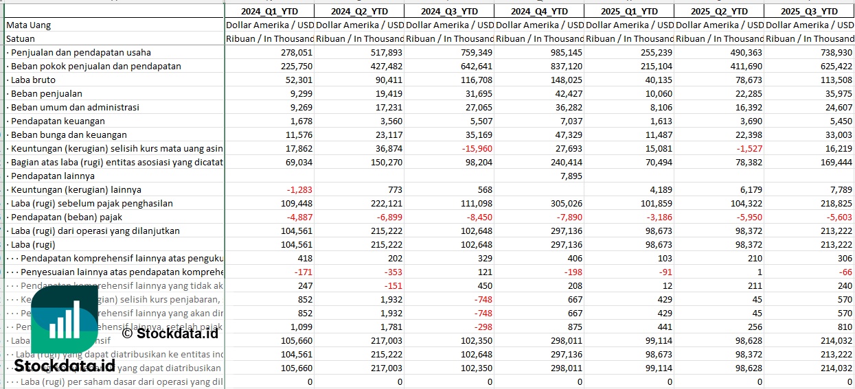JAKARTA — Emiten produsen kertas di bawah naungan Grup Sinar Mas, PT Pabrik Kertas Tjiwi Kimia Tbk (TKIM), membukukan laba bersih sebesar US$213,22 juta sepanjang Januari–September 2025, melonjak 107,72% dibandingkan periode yang sama tahun sebelumnya.