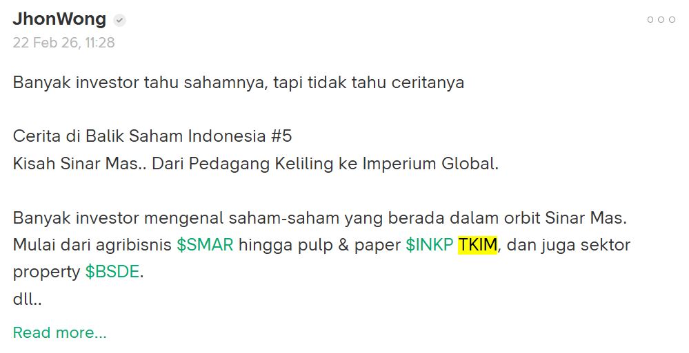 Setiap pembahasan saham hanya bersifat sebagai referensi atau bahan pertimbangan, dan bukan merupakan perintah beli atau jual. Setiap tindakan adalah tanggung jawab dari pelaku pasar. Do your own research.