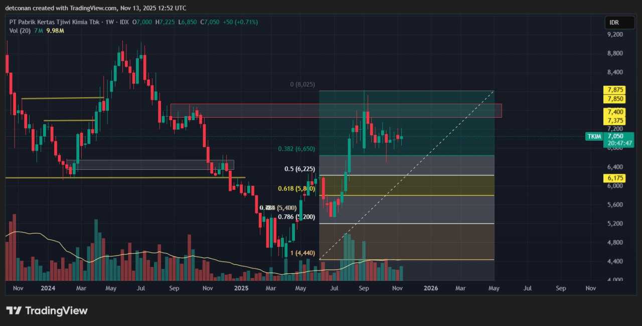 🔼 $TKIM gap up ke 7500 (+525 / +7.53%) dari 6975