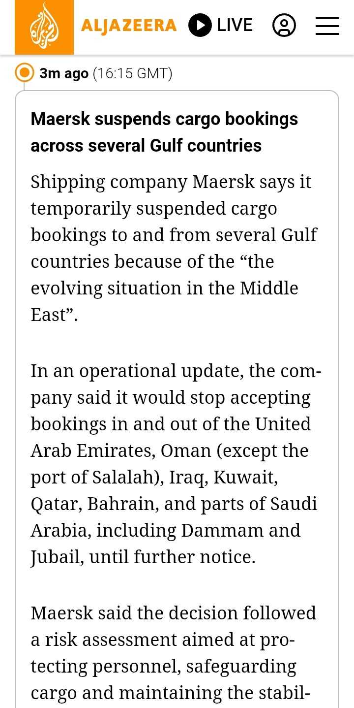 β Maersk suspend cargo booking yang melintas negara teluk.