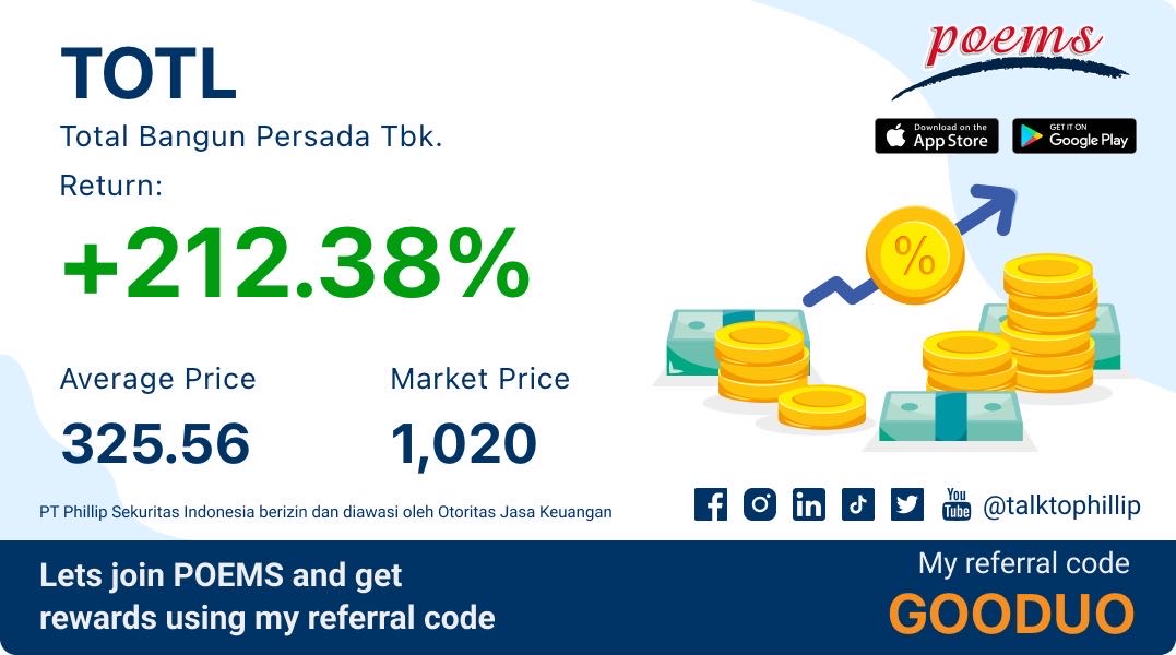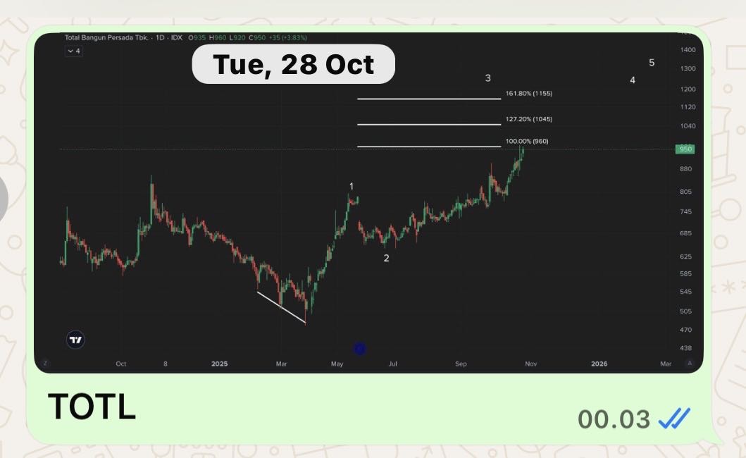 $TOTL: Sekretaris Perusahaan Total Bangun Persada, Anggie S. Sidharta, mengatakan kepada Kontan bahwa pihaknya telah mencatatkan nilai kontrak baru sebesar 5,33 triliun rupiah per awal Desember 2025. Jumlah tersebut lebih tinggi sekitar +7% dibandingkan target 2025 di level 5 triliun rupiah.