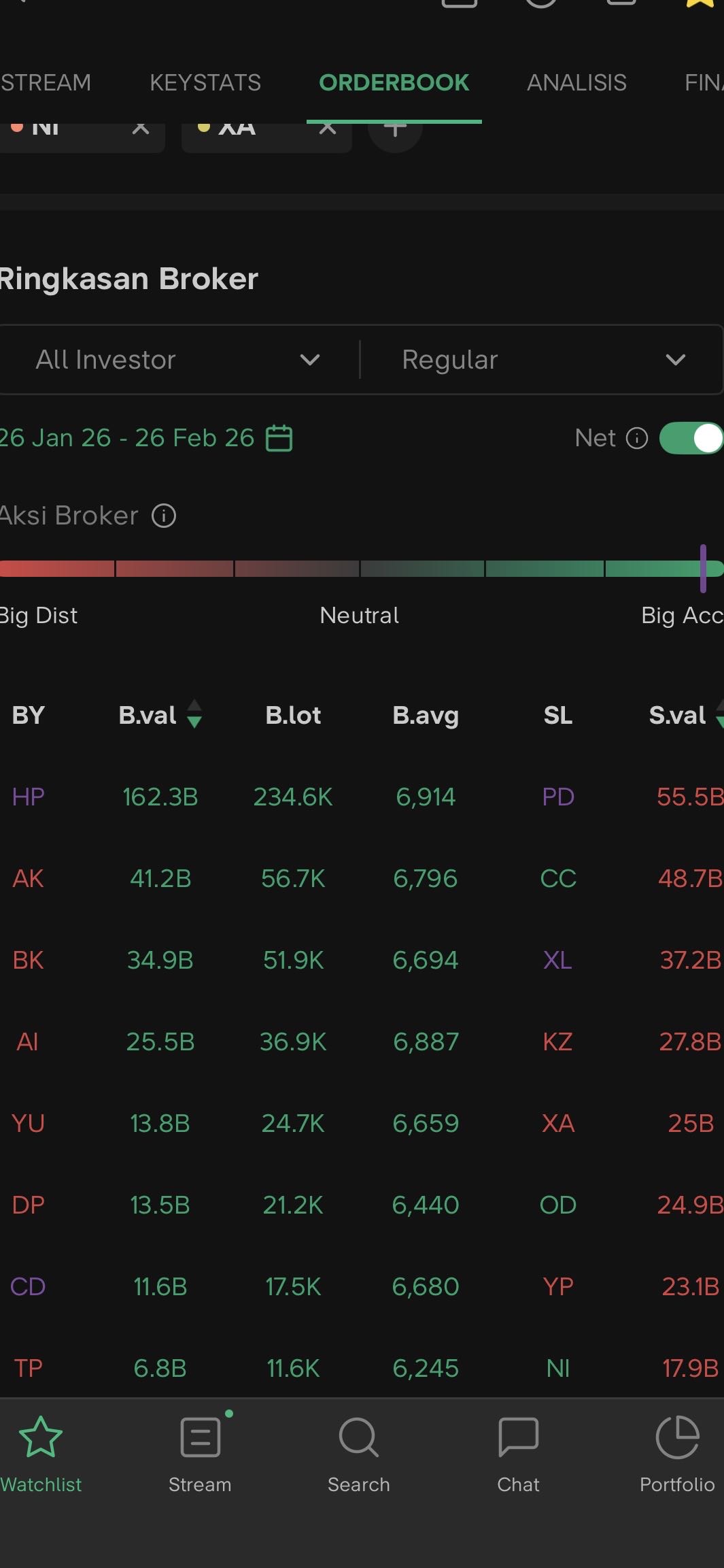 Bagaimana cara melihat satu saham sedang di akumulasi, apakah dari broker yang digunakan?