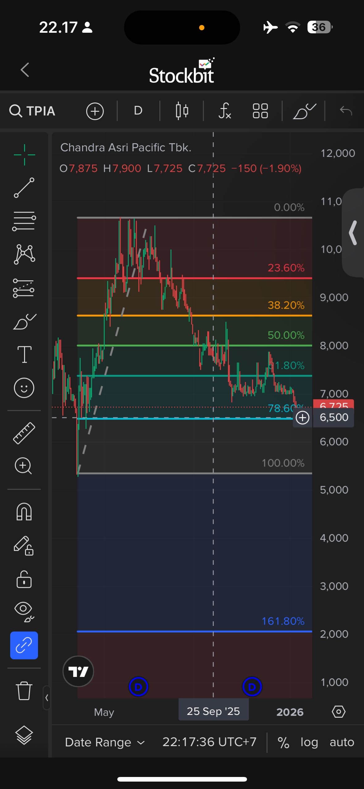 $TPIA area 78% sudah mulai kejemput, kalau mau masuk tunggu rebound aja dulu baru masuk, kalau gaada rebound jangan masuk takut makin dalam