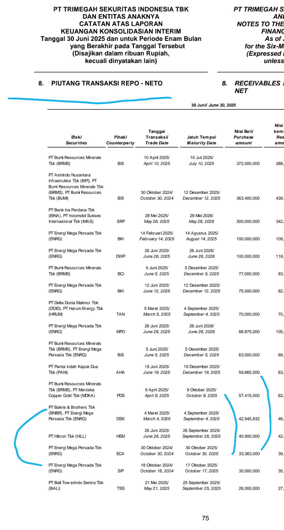 Ndak banyak sih, cuma 40 Miliar aja Repo nya. Jatuh tempo September 2025.