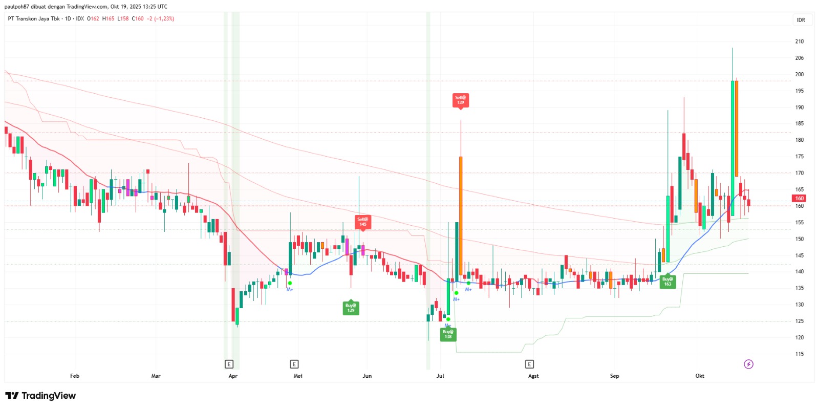 Selama bertahan di atas 150, saham ini masih tergolong sehat dan berpotensi untuk pantulan teknikal ke 170-180.