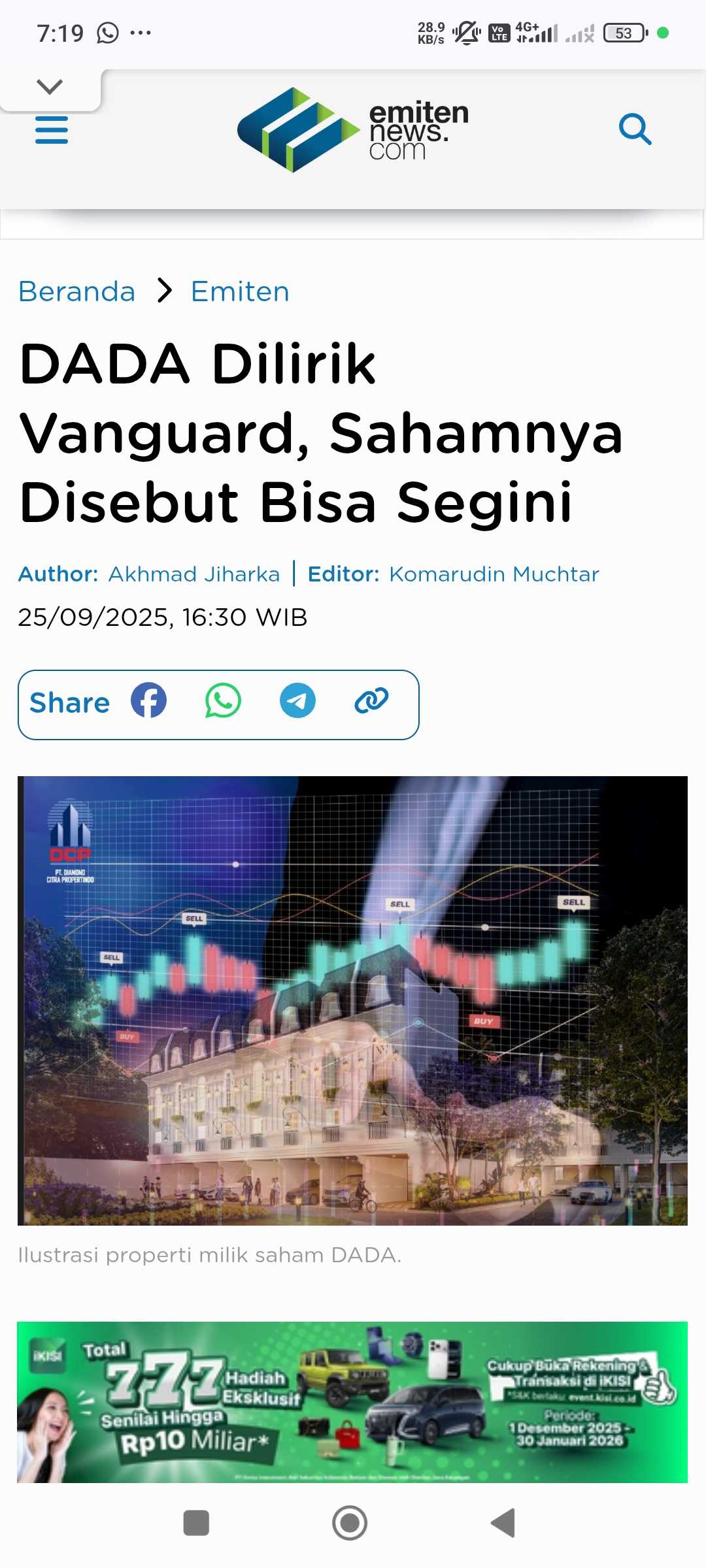 Nih portal juga pernah posting mengenai saham $DADA.. Sebelum akhirnya jadi gopek... Memang ternyata masih banyak RITEL yang FOMO dan PILON ... PIKUN dan BLOON.. wkwkkww.. Gooo.. Beeeee... Goooo...