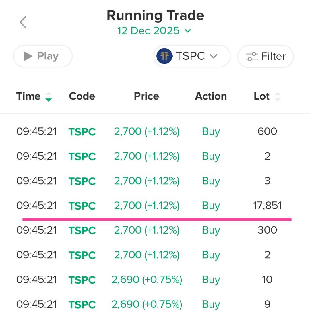 Who is buying TSPC @ Rp 2.700 aggresively ?