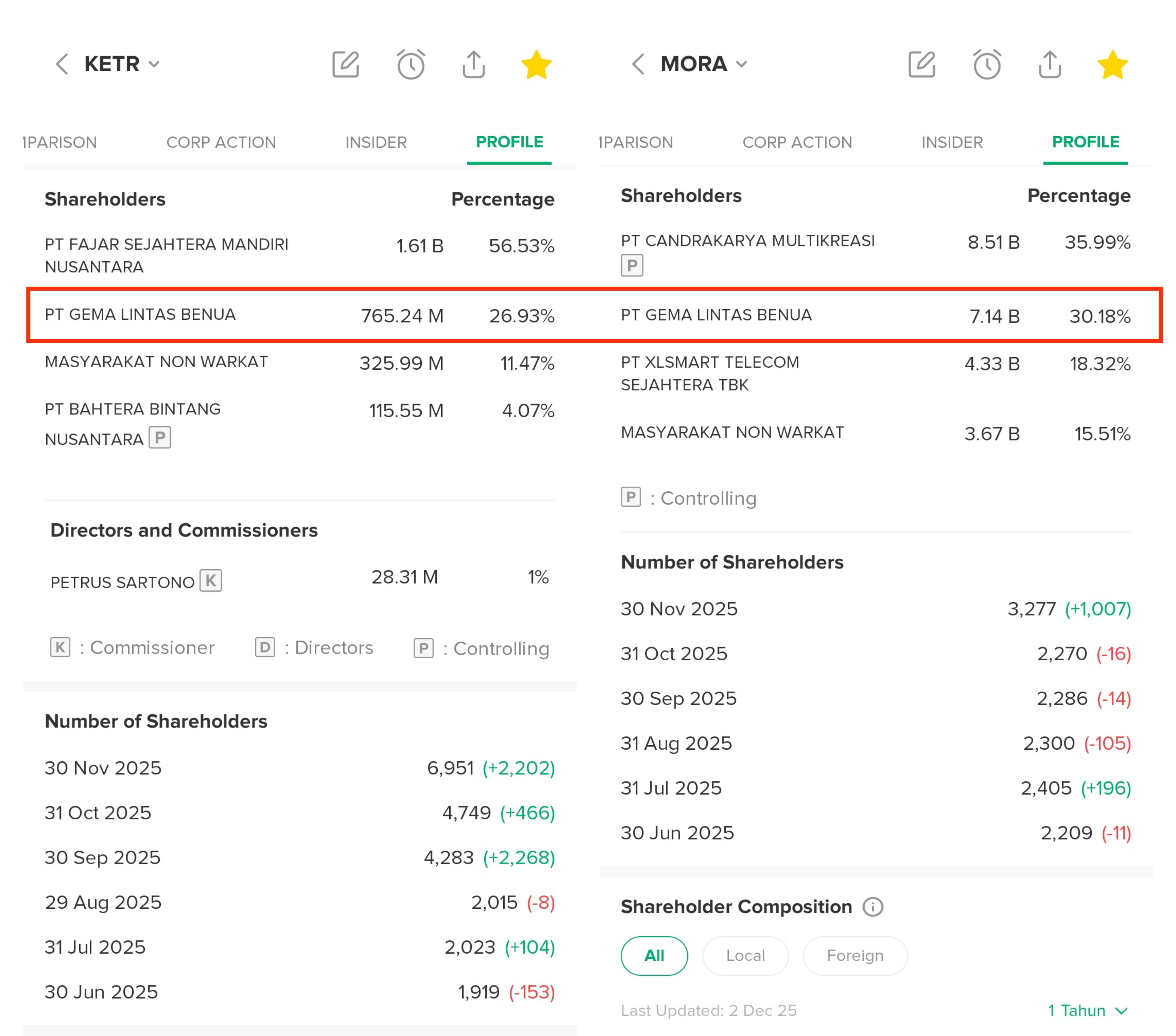 15Dec2025 Crossing 5.09% KETR @ Rp 300 to Ascendia belong to YT.