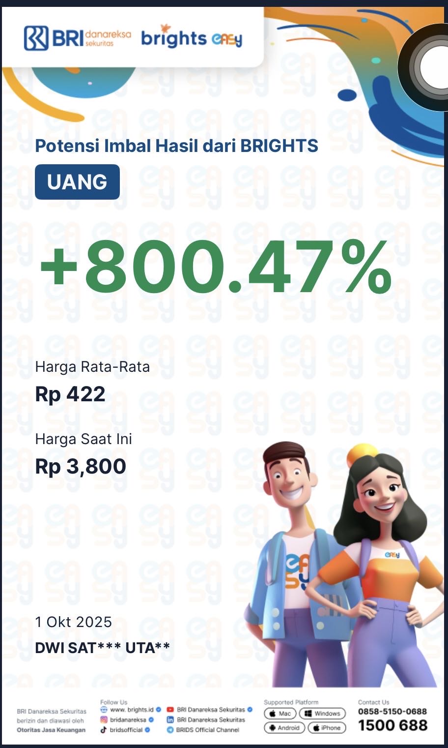 Sama nih saya juga cuman 1 lot, alhamdulillah porto nya langsung melejit , terimakasih untuk $UANG dulu gasengaja masuk saham ini, niatnya mau bsjp eh malah bsgd a.k.a beli sore ga dijual jual wkwkwkwk