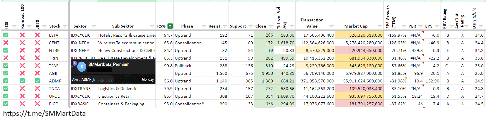 * Notes: Data RS%, EPS Growth bisa diakses lewat SMMartData Telegram Bot.