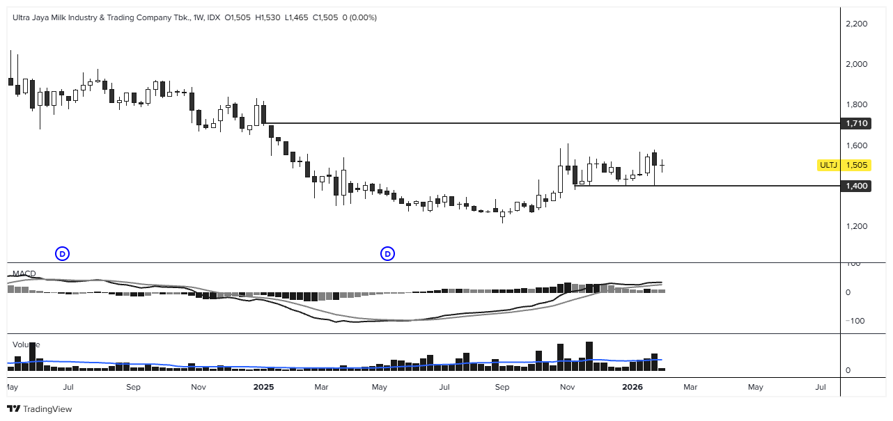 - ULTJ layak untuk swing rebound selama bertahan di atas support kunci 1420