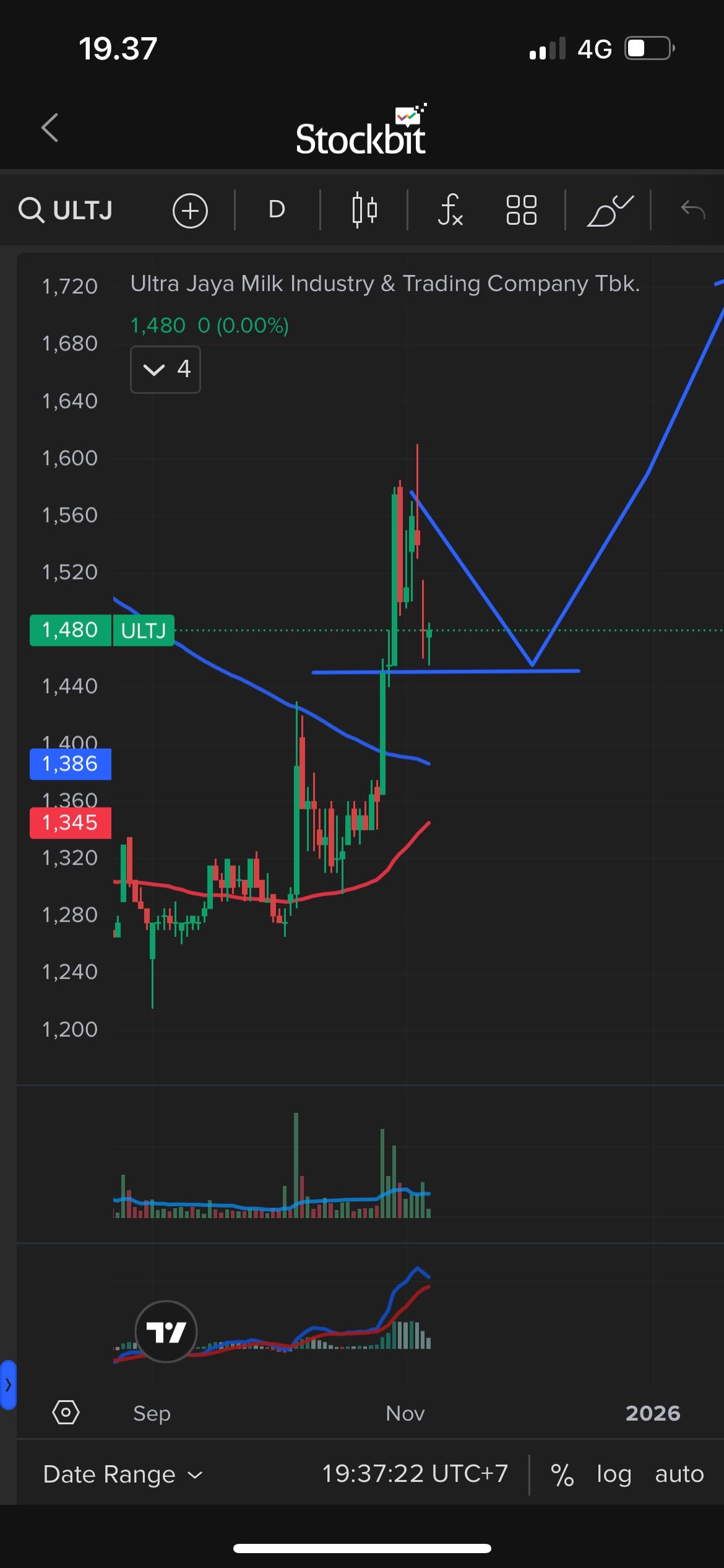 $ULTJ perhatikan supportnya skrg ada dikisaran 1440-1450 ya, ada kisaran MA-20 disana.