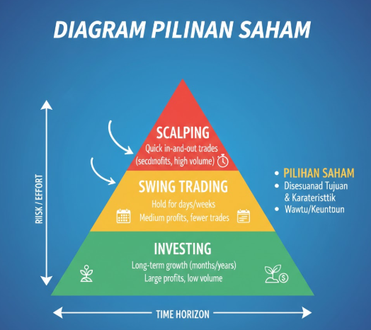 Tiga gaya utama dalam berinvestasi saham berdasarkan waktu dan tingkat risiko: