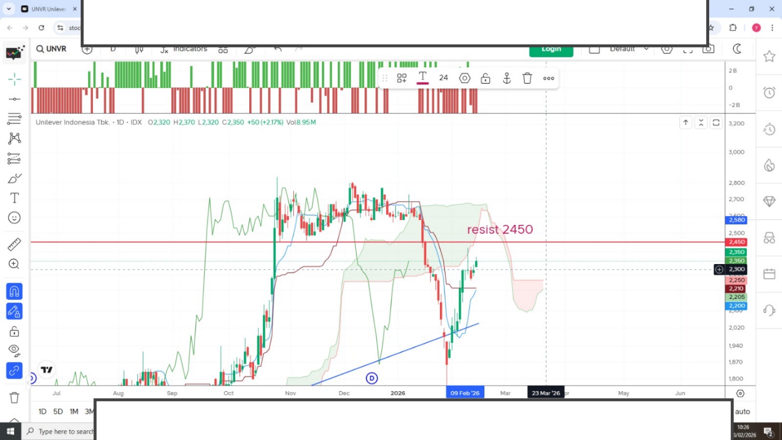 $UNVR support sebelunya 2450..telah di break dan langsung terjun payung keharga 1600 an..klo resist 2450 breaak dengan volume tebal..kmungkinan harga akan bermain di harga 2600-2800...yuk ndar..jebolkan dengan volume tebal