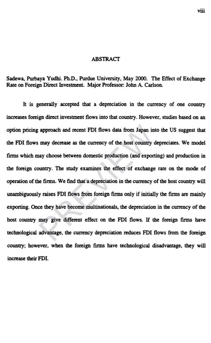 Disertasi ini penuh hitungan model matematis untuk membuktikan efek kurs terhadap FDI. Masih relevan sampai sekarang.
