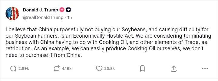 Trump menyatakan tidak ada alasan untuk bertemu Xi Jinping dalam 2 minggu kedepan, dan justru akan menaikkan tarif impor untuk China.