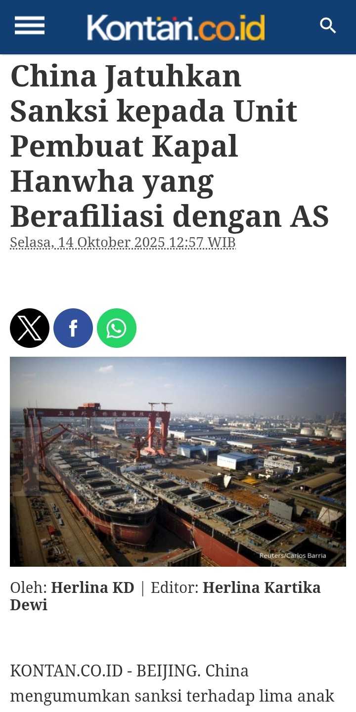 Terbaru, China menjatuhkan sanksi larangan transaksi, kerja sama, dan aktivitas apapun terhadap perusahaan kapal yang terafiliasi dengan US.