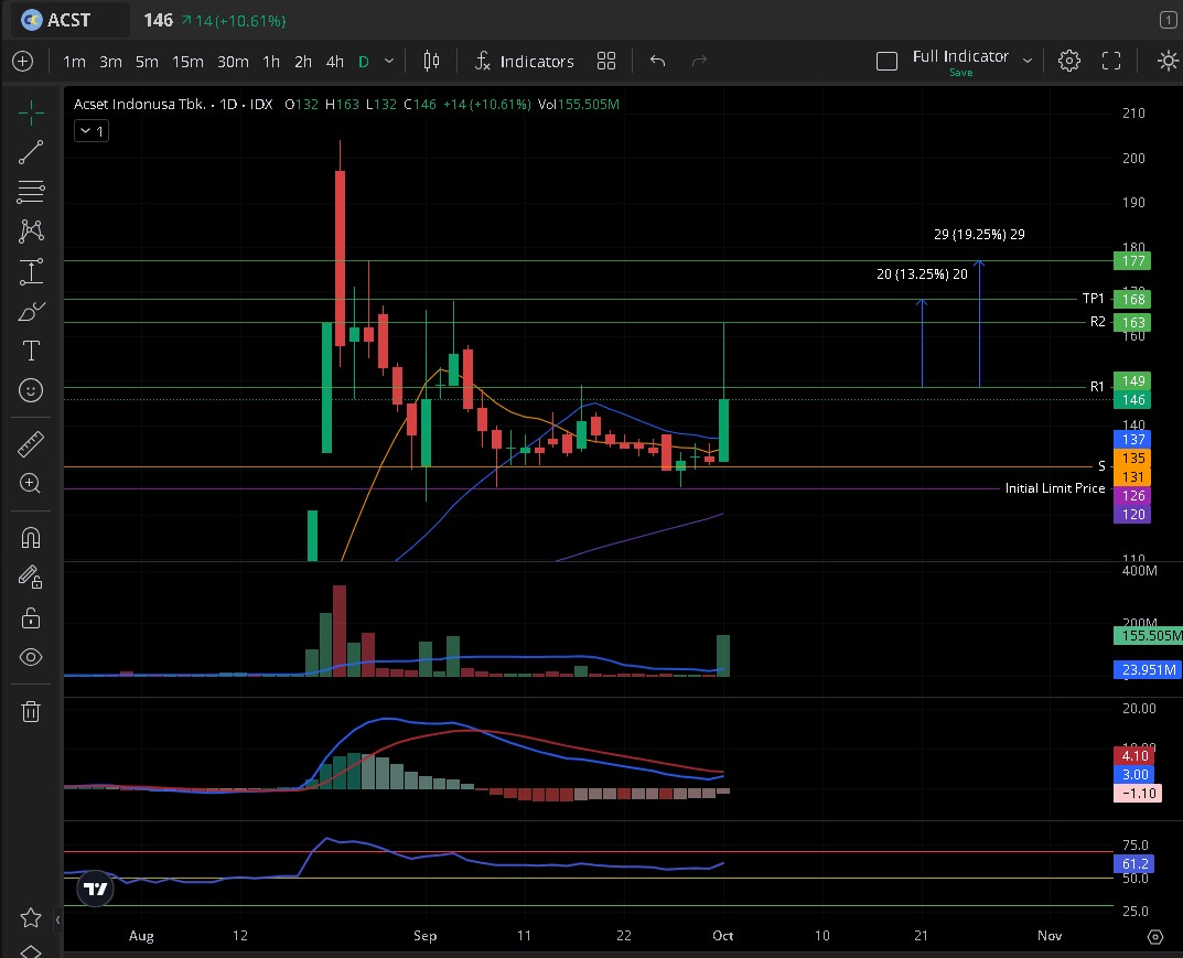 $ACST menarik kalau bisa BO R1 > 149, potensi kenaikan up to 13-19% ke 168-177.
