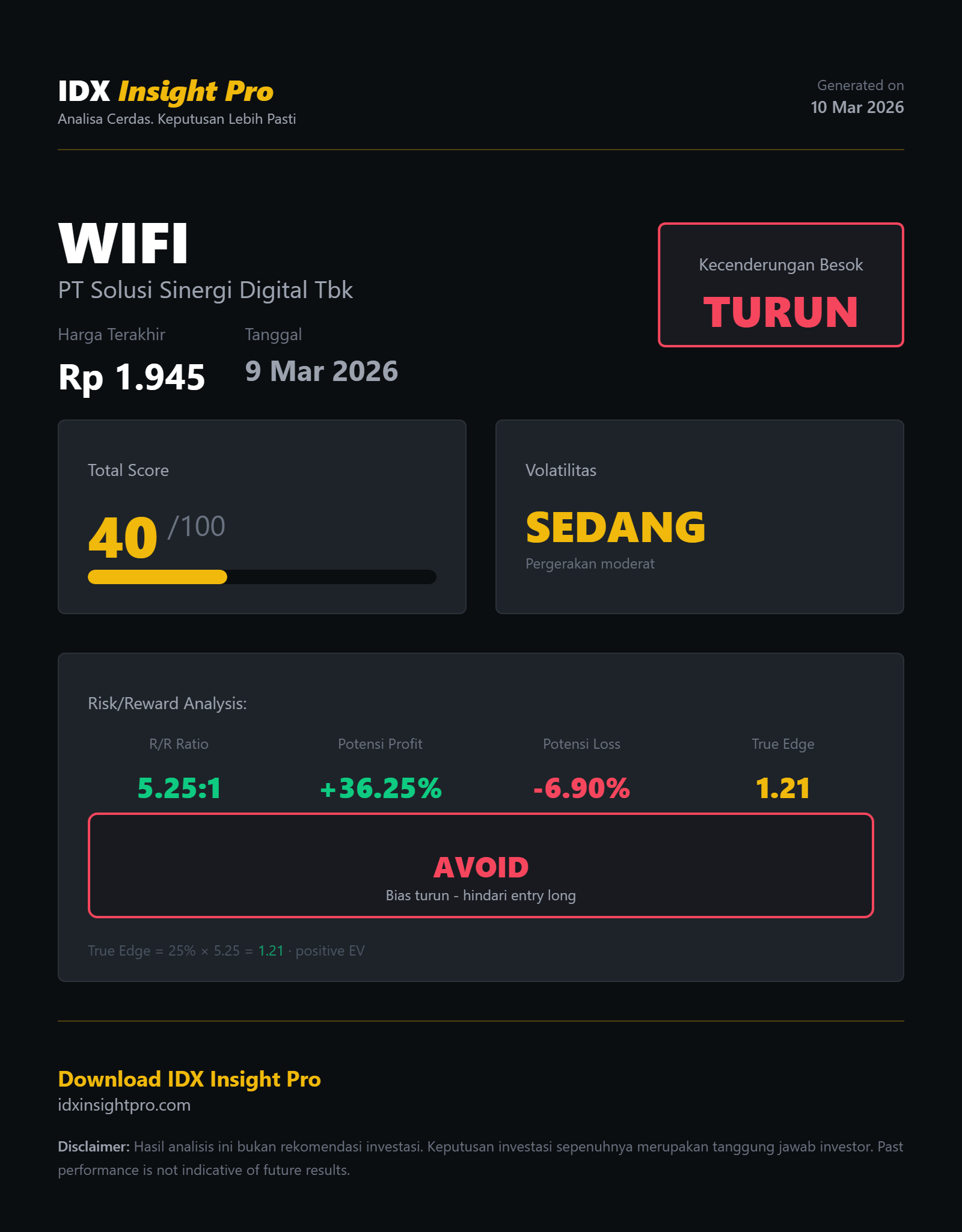 wifi wifi bisa jadi saham sampah kalau nyungseb terus.