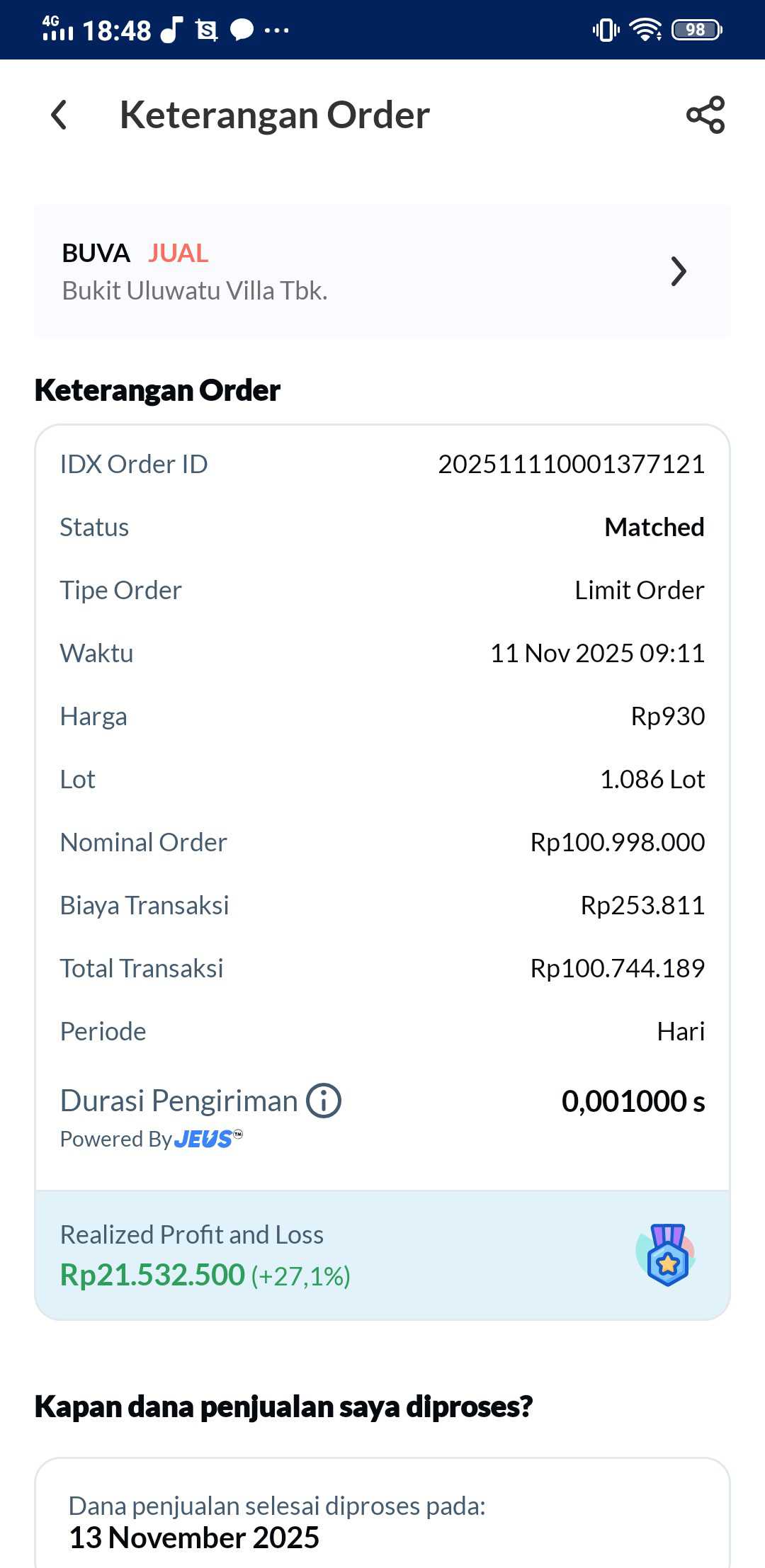 kalo ikut right issue mah itu bisa turun Avarage nya apalagi dapat bonus saham warrant, kalo gua di posisi seperti itu mah santai aja, gua pernah masuk di $BUVA pas cumdate 845, tapi setelah tebus Right Issue malah bisa turun Avarage nya jadi 731. hold cuma seminggu doang harga balik ke 930 dan berhasil jual, eehh skrg. BUVA malah naik ke 1100an., yg penting kalo ikut Right Issue itu di tebus saham Right Issue nya biar Avarage nya turun, dan yakin aja setelah Right Issue harga pasti dibawa naik, banyak contoh nya seperti: PANI, $WIFI BUVA, dll. semoga yg ikut Right Issue bisa mendapatkan cuan maksimal. Nih testimoni hasil ikut Right Issue di BUVA dengan Avarage tinggi.,
