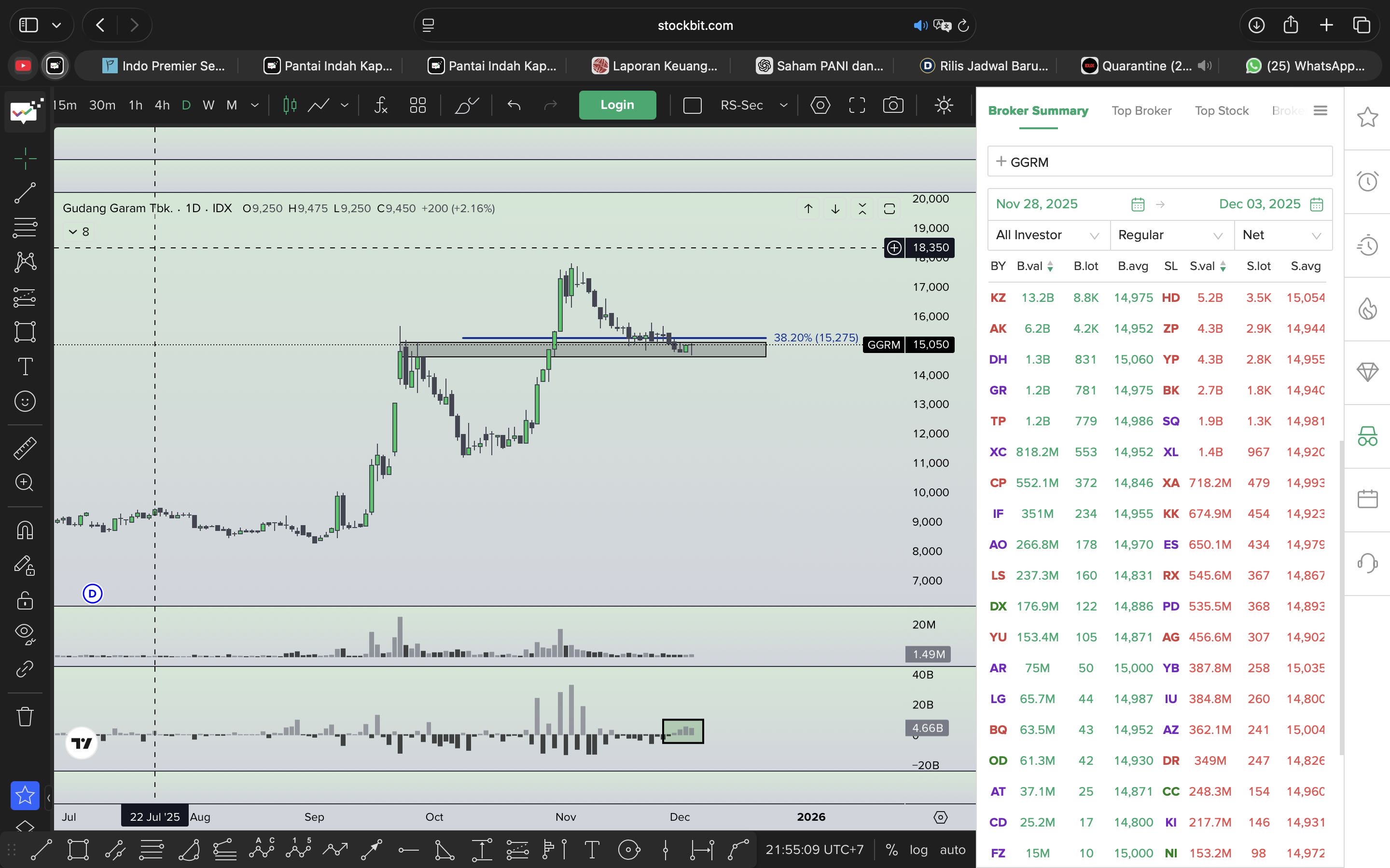 Sejak tanggal 28 Nov, KZ dan AK udah Akumulasi GGRM diharga 14.975-952, dan yang menariknya adalah, harga mereka belum terlalu jauh dari harga sekarang.