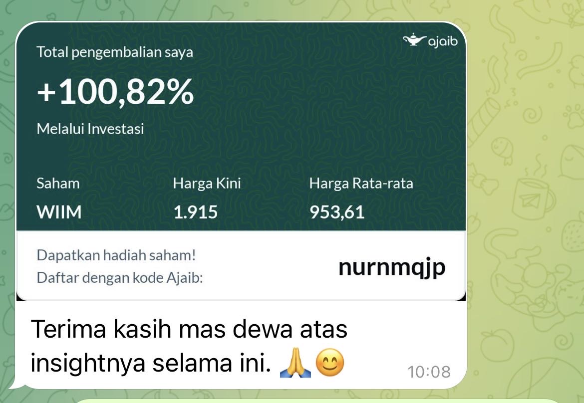 Makasih $WIIM buat saya sudah cukup, saya pamit dulu.