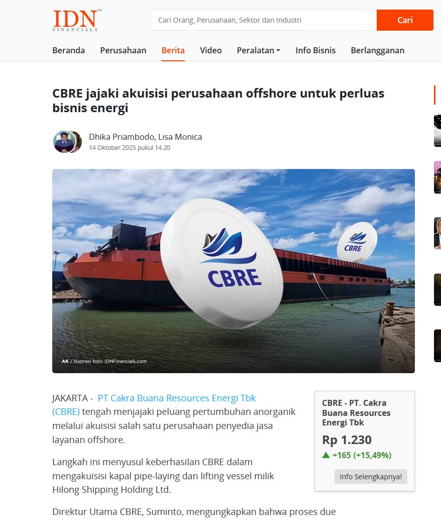 namun recover $CBRE memakai berita di media, Cbre akan mencaplok market leader industri Offshore service.