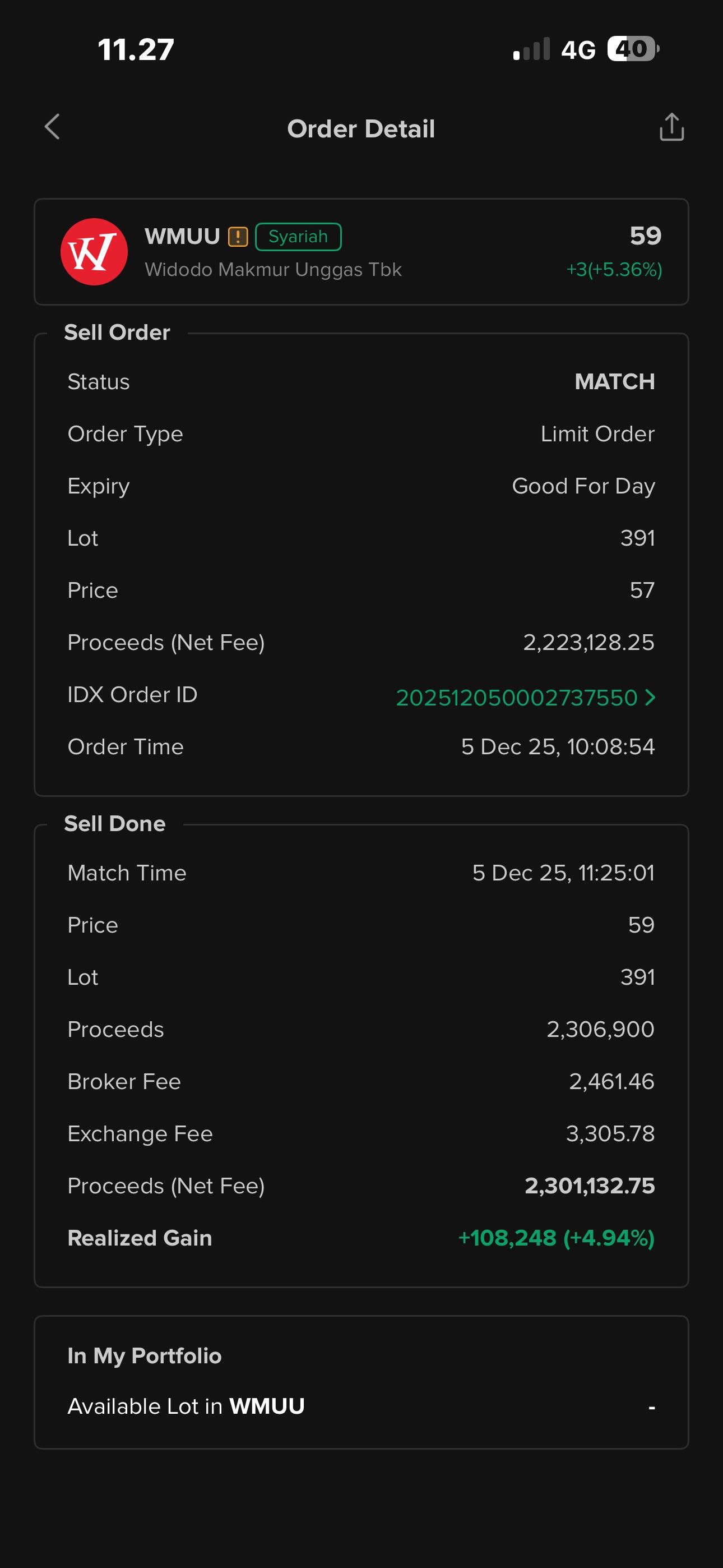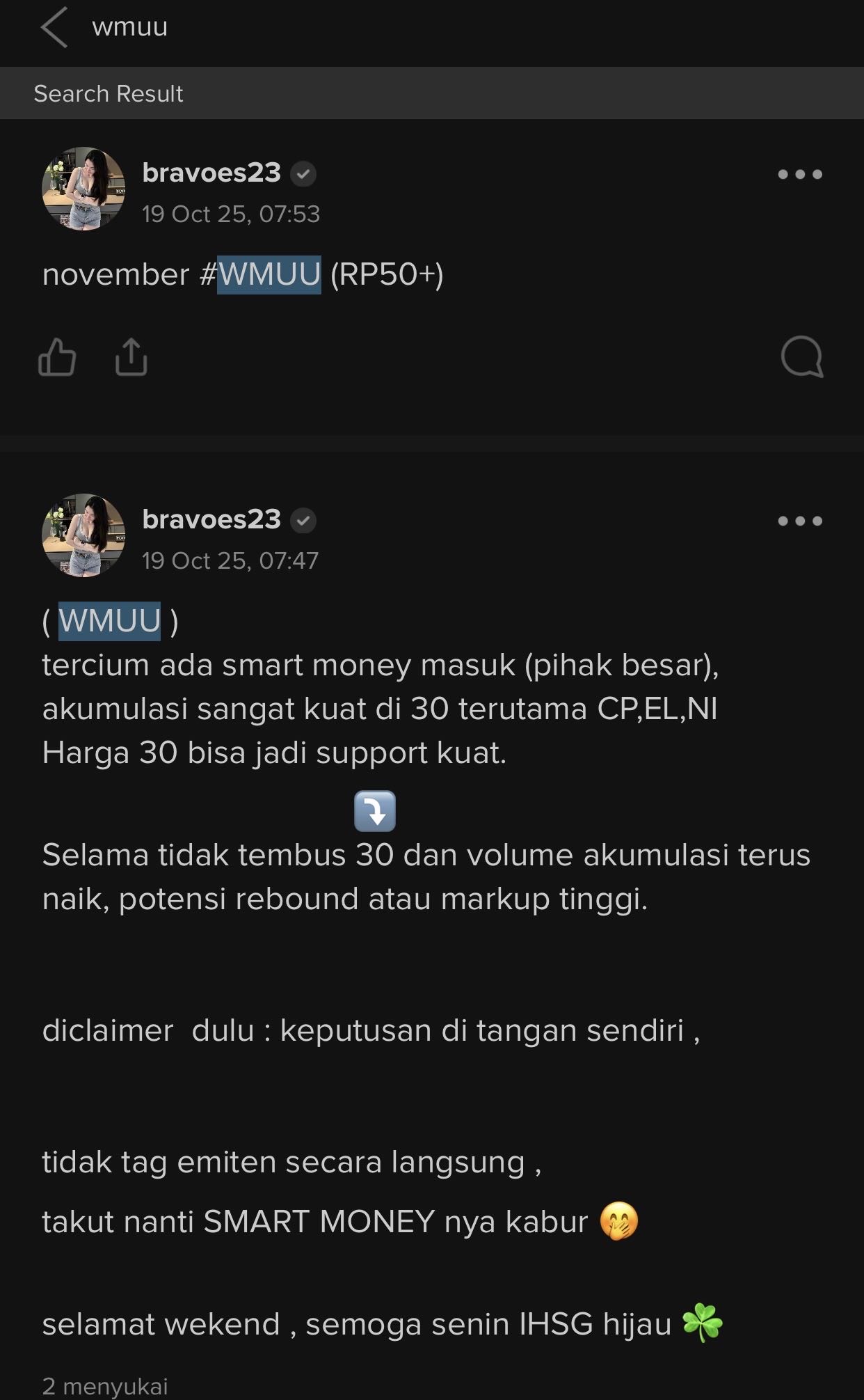 $WMUU ini saran gua trkhir ya. klo udh profit trkhusus yg avg 50 keatas. mending cabut. gapapa bro untg lu dikit. drpd lu mines . apalg sahm bgni susah kluar . .